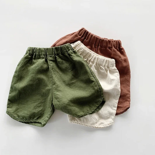 Cotton Linen Shorts Summer New Boys And Girls Thin Knee Length Pant Korean Children's Baby Casual Loose Pockets Outside Pants